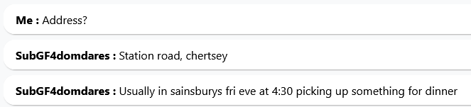 I think I actually recognise this girl. By Chertsey, I’m assuming she means Chertsey Surrey UK? I think I tried to chat her up once in the Tavern!! Will see if I can find her in sainsburys!