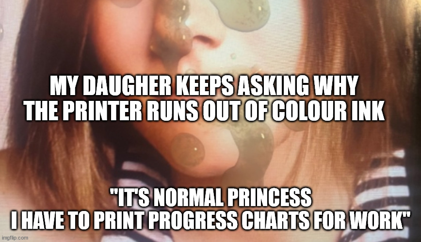 The real reason the printer never has colour ink is Daddy is cum tributing photos.