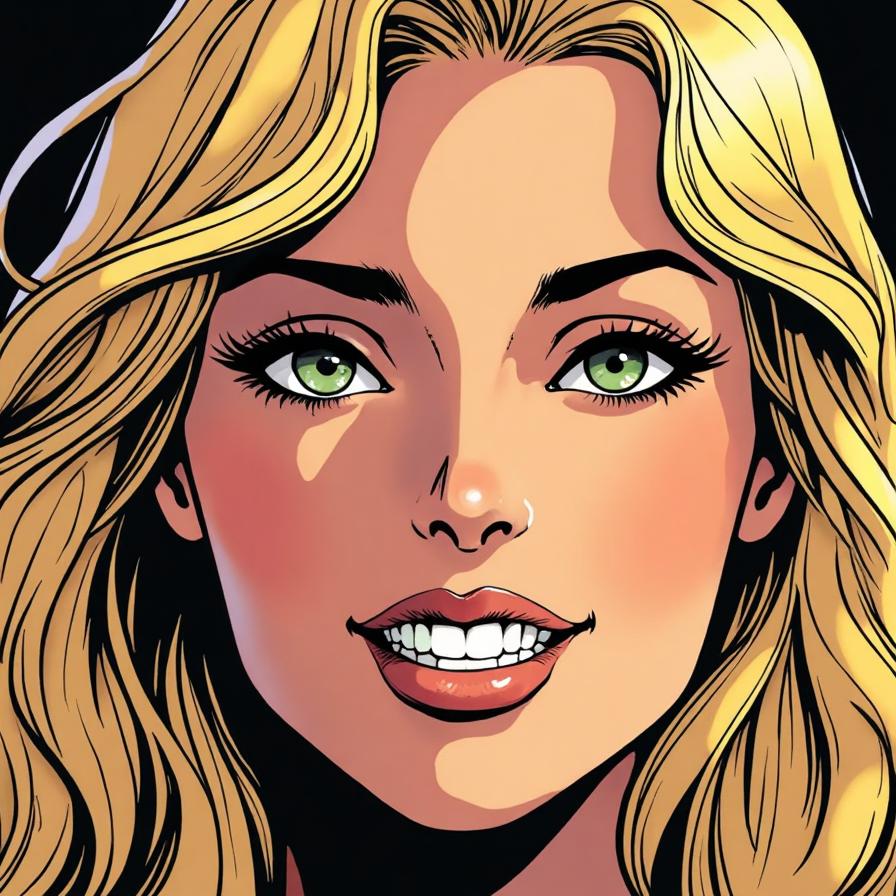 goddess Aphrodite, looking at the camera, greeny grey eyes, blonde hair, smiling, top teeth showing, horizontal but arced brown eyebrows, 34B breasts, upper body view with face